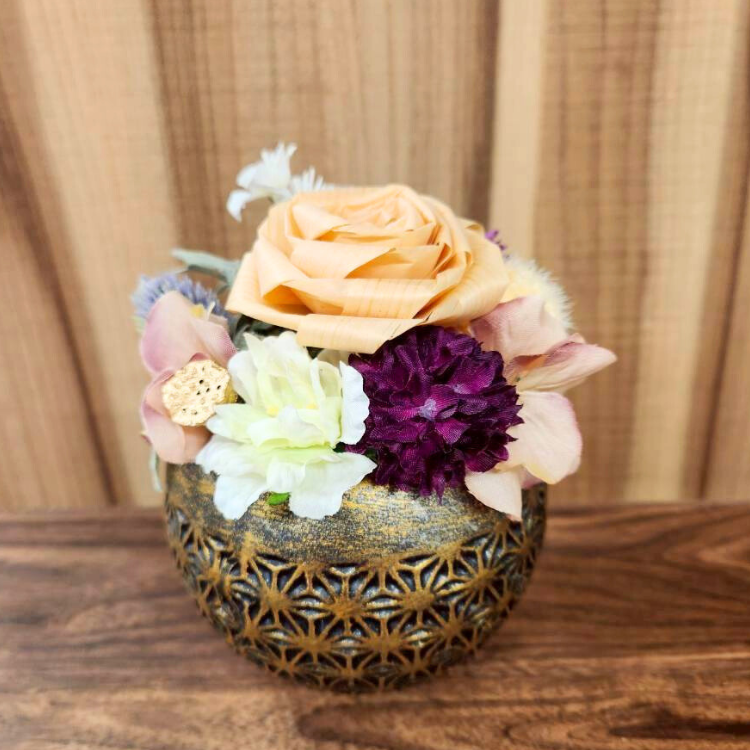 ひのきろうず アレンジメントシック陶器 造花 プレゼント 厳か