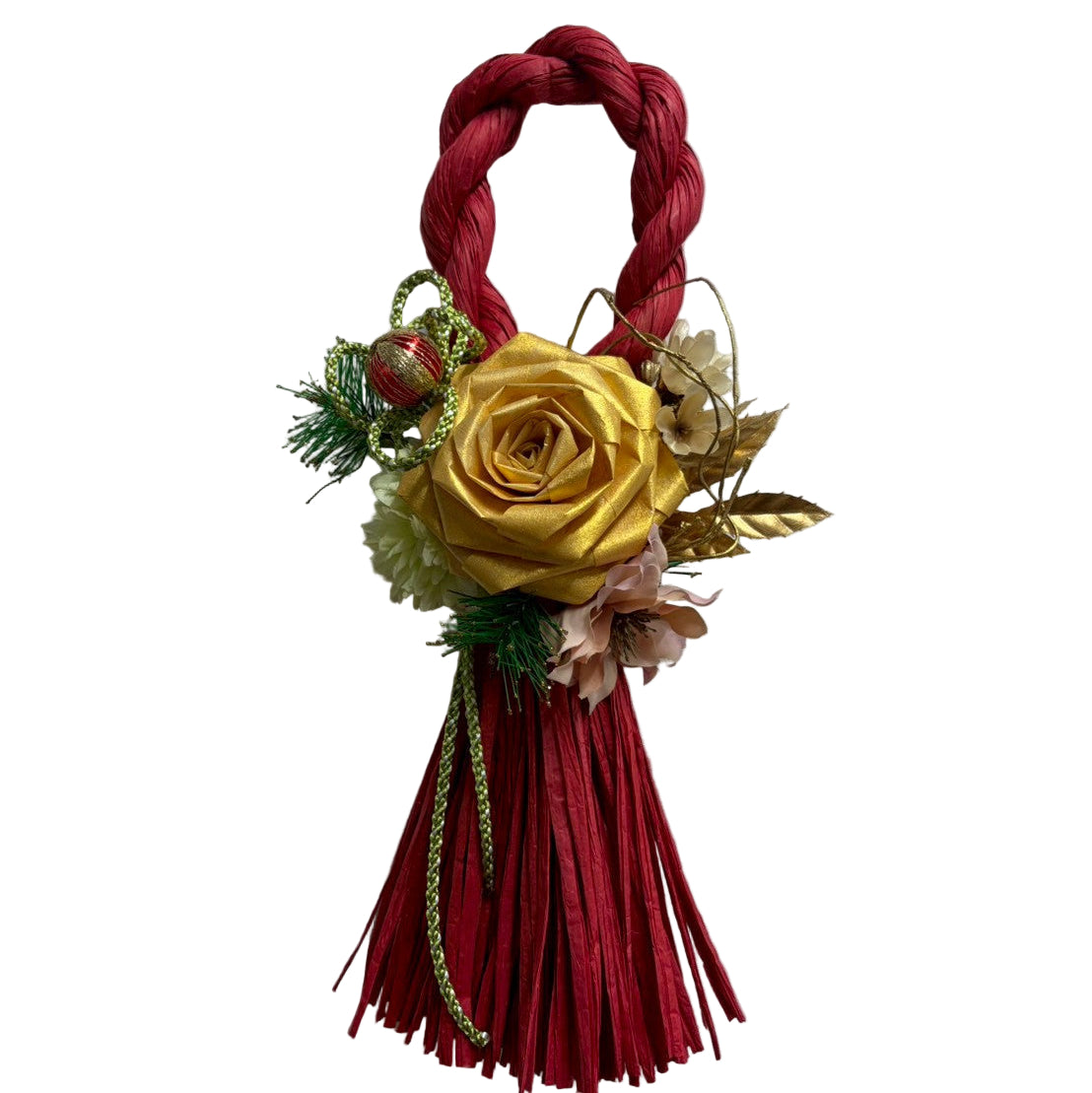 赤のしめ縄に、存在感のある“金のひのきろうず”を主役に添えた